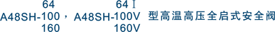 A48SH-64~16型適用于工作溫度《425℃,A48SH-64I型適用于工作溫度《510℃,A48SH-100~160V適用工作溫度《550℃的蒸汽等介質的設備和管路上,作為超壓保護裝置。