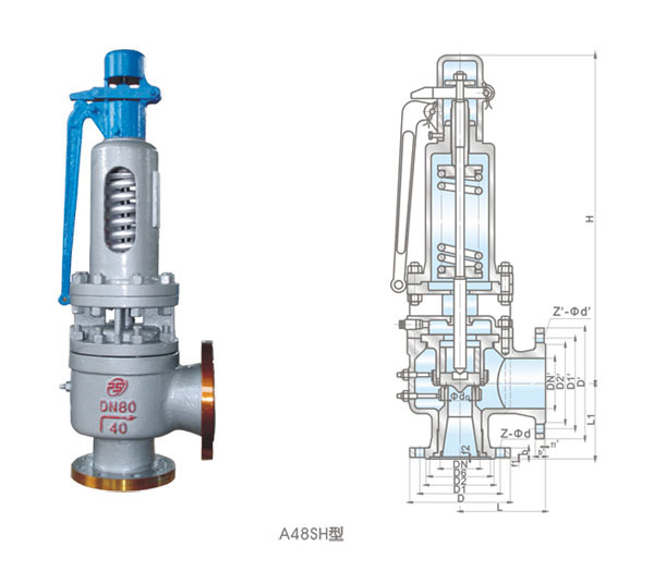 A48SH—16C~40型適用于工作溫度《425℃, A48SH -16I-40I型適用于工作溫度《510℃,A48SH-16V~40V 型適用于工作溫度《550℃的蒸汽等介質的設備和管路上 作為超壓保護裝置。