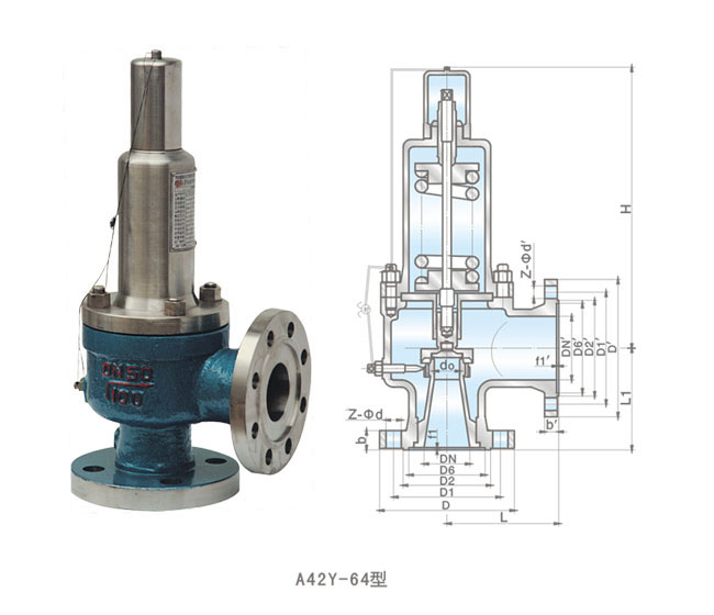 A42Y-64A42Y-100型適用于工作溫度《300℃的空氣、石油氣等介質的設備和管路上:A42Y-64PA42Y-100P型適于工作溫度《200℃有腐蝕性氣體介質的設備和管路上:當設備和管路內壓力超過允許值時,閥門自動開啟,繼而全置排放; 當壓力降低到規定值時,閥門自動關閉,保證設備和管路的安全運行。