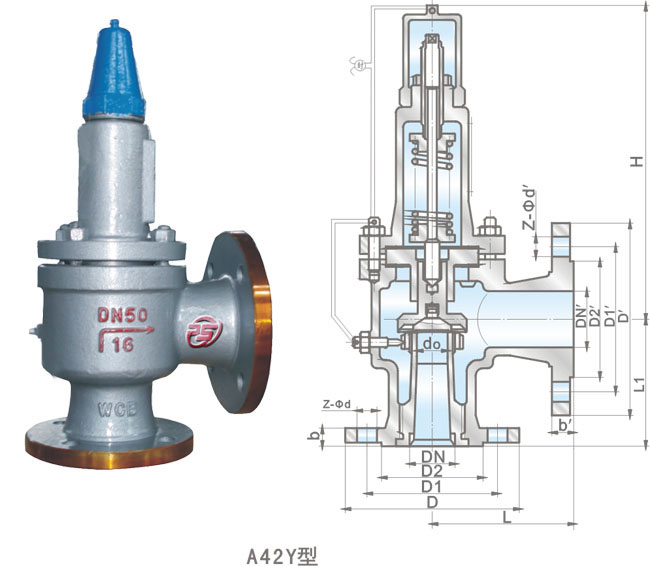 A42Y-16C~40型適用于工作溫度《300℃的空氣、石油氣等介質(zhì)的設(shè)備和管路上:A42Y-16P~40P型適用于工作溫度《200℃有腐蝕性的氣體介質(zhì)的設(shè)備和管路上;作為超壓保護裝置,當(dāng)設(shè)備和管路內(nèi)壓力超過允許值時,閥門自動開啟, 繼而全量排放;