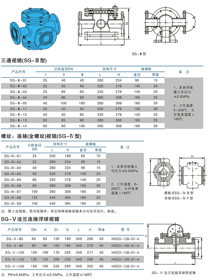 三通視鏡、全螺紋連接視鏡、法蘭連接浮球視鏡
