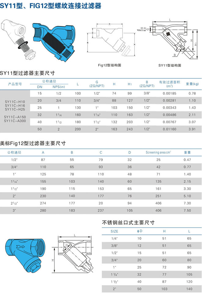 阿司米閥門有限公司做為專業的安全閥廠家,提供實惠的管道過濾器的價格,客戶可提供的要求 ,我們可以根據您所提供的要求,為您推薦合適的SY11型、FIG12型螺紋連接過濾器產品。